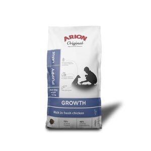 Az Arion Original Growth Chicken Puppy Medium egy kölyökkutyáknak szánt teljes értékű kölyökeledel közepes méretű kölyökkutyák számára, amely friss csirkehúst tartalmaz. A gluténmentes, egyetlen fehérjéből álló formula könnyen emészthető csirkehúst, prebiotikumokat és probiotikumokat, valamint megfelelő mennyiségű vitamint és ásványi anyagot tartalmaz.
