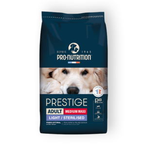 A Prestige ADULT MEDIUM MAXI LIGHT/STERILISED táp segít fenntartani az optimális testsúlyt anélkül, hogy csökkentené a szokásos napi adag mennyiségét: 20%-kal kevesebb energiát tartalmaz, mint Prestige Adult Medium társa.