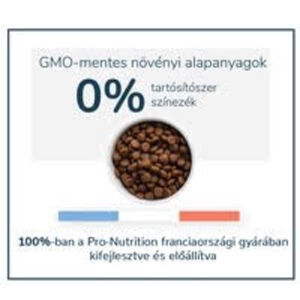 Dehidratált állati fehérjék 26% (szárnyas, sertéshús). Kukorica. Búza. Borsórostok. Sertészsír. Almarostok. Lenmag. Állati fehérje-hidrolizátumok. Répapép. Borsó. Sörélesztő. Tengeri só. Hal autolizátumok (0,5%). Articsóka. Frukto-oligoszacharidok. Enterococcus faecium (4b1707) (probiotikumok). Vitaminok és nyomelemek.