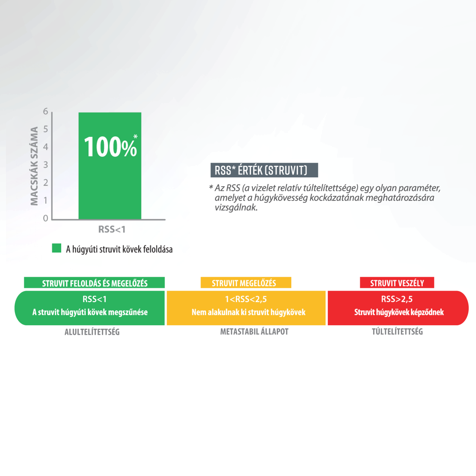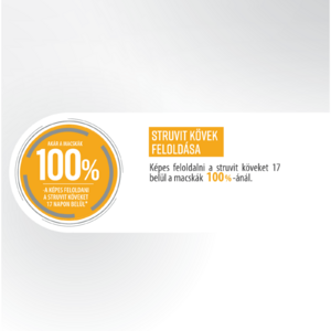 Képes feloldani a struvit köveket 17 napon belül a macskák 100%-ánál.