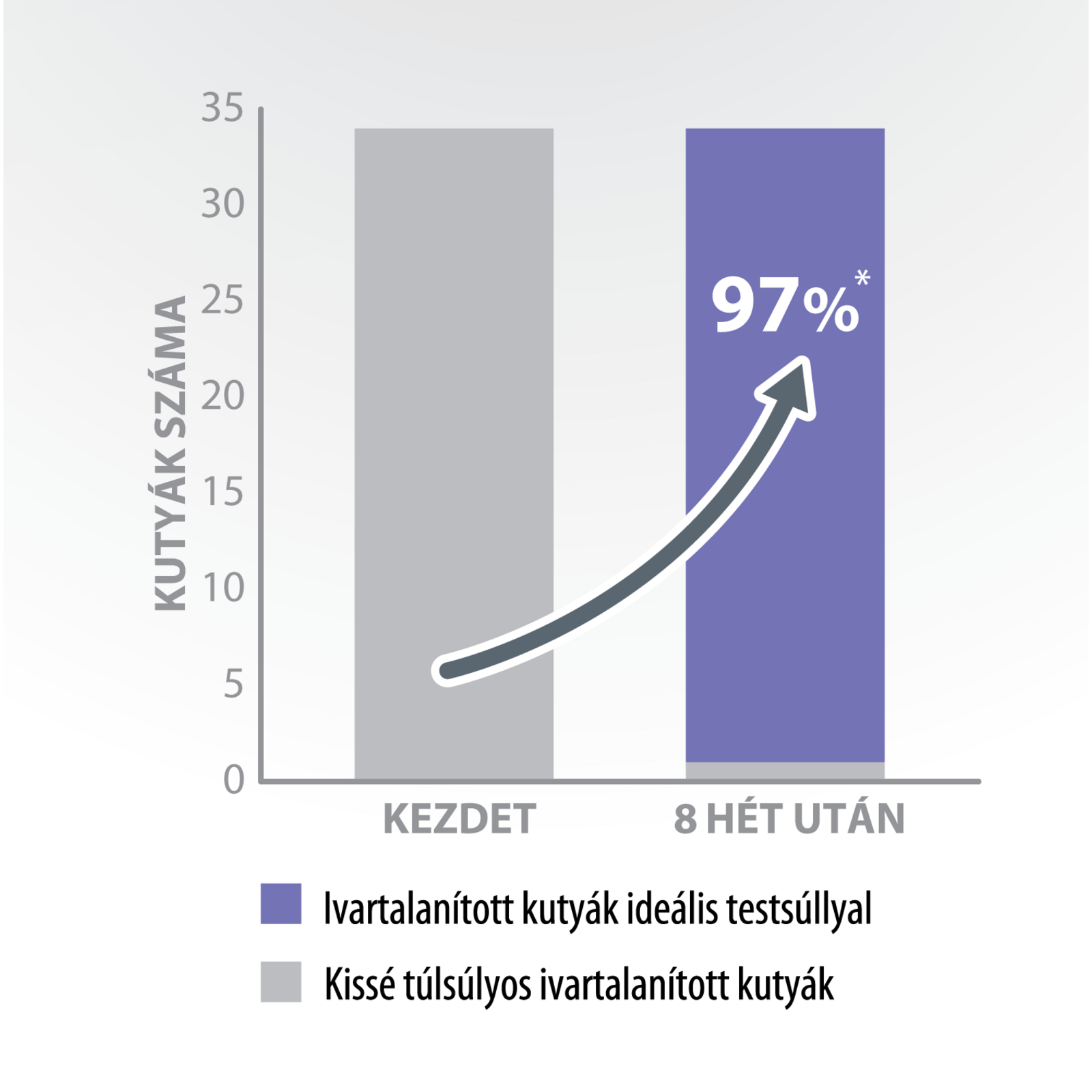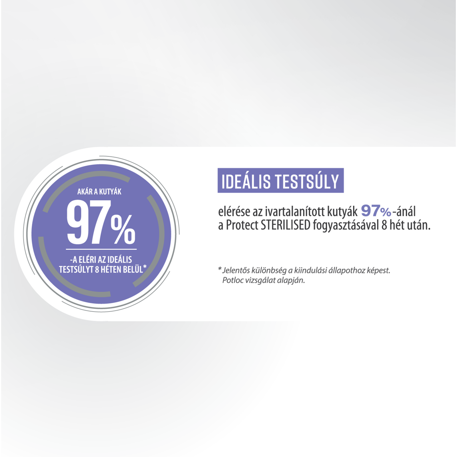 Akár az ivartalanított kutyák 97%-a eléri az ideális testsúlyt 8 után után a Protect STERILISED táp fogyasztásával.