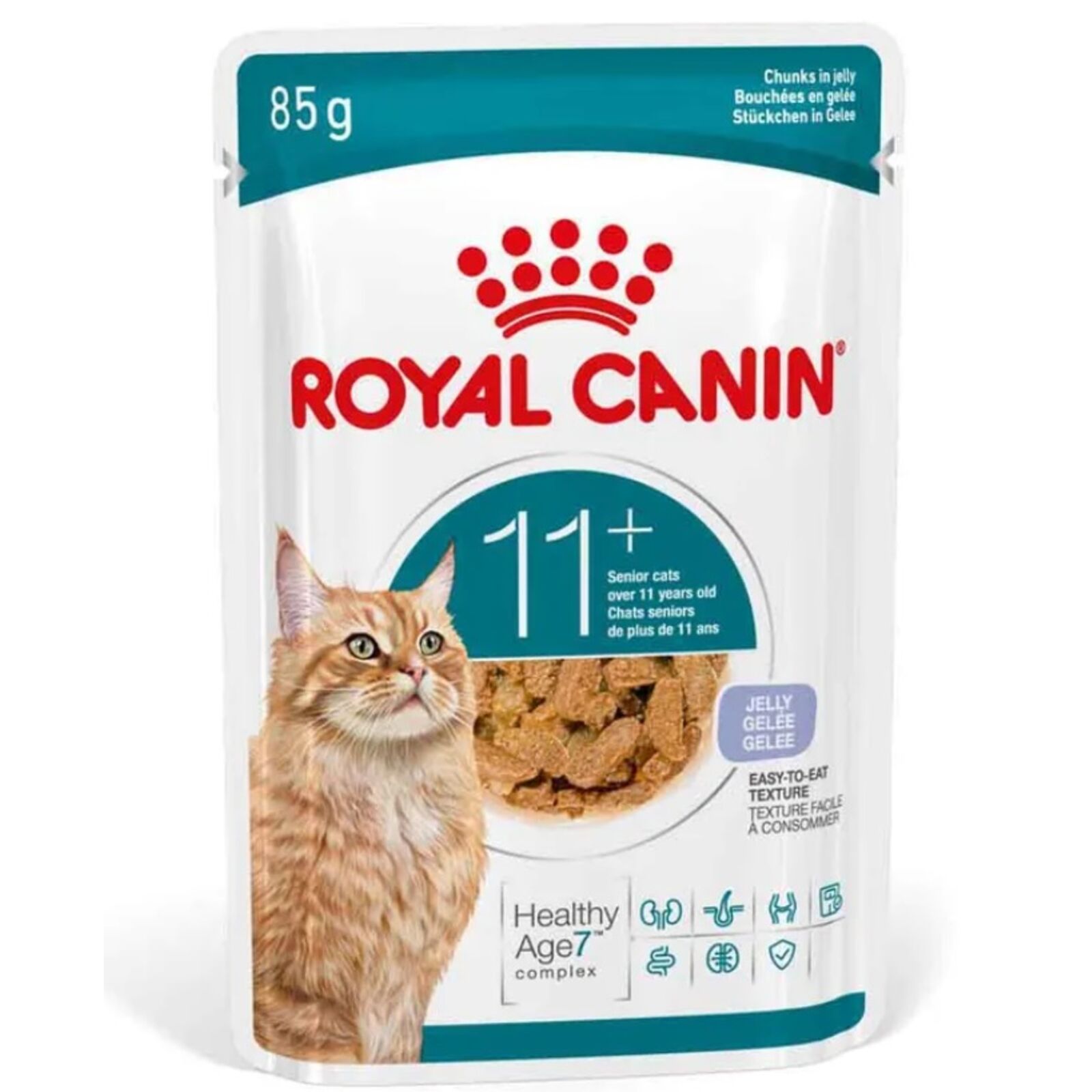A Royal Canin Ageing 11+ aszpikban jellemzői:- Kiváló minőségű nedvestáp 11 éves és annál idősebb macskák számára